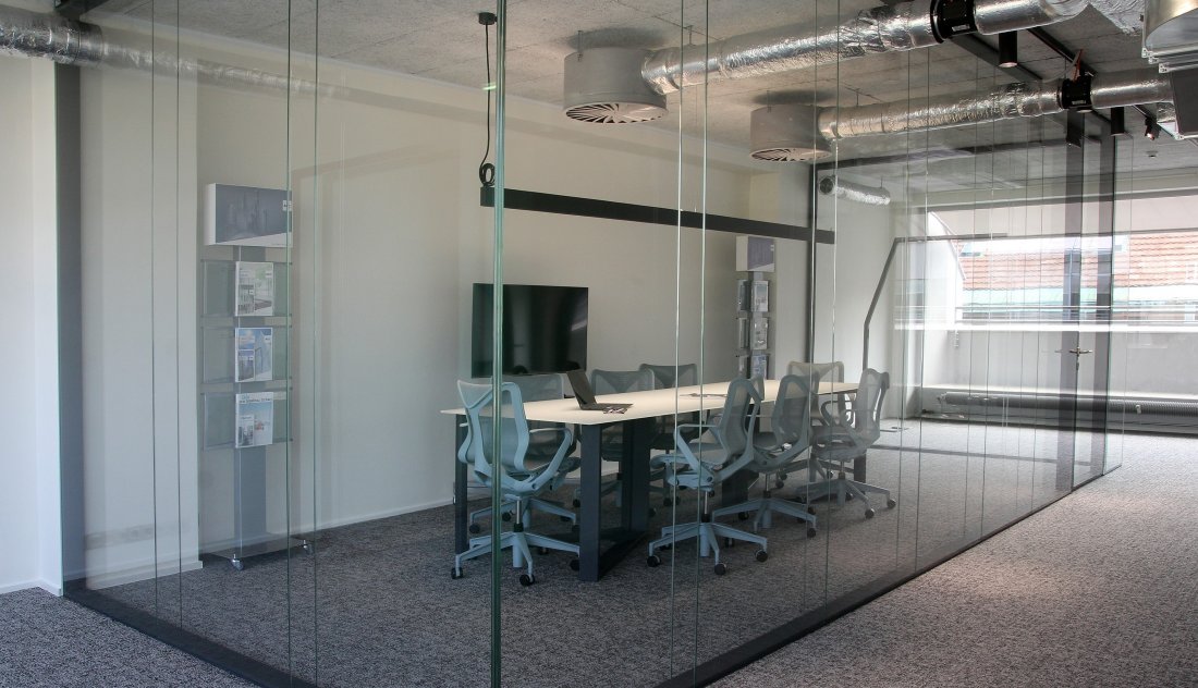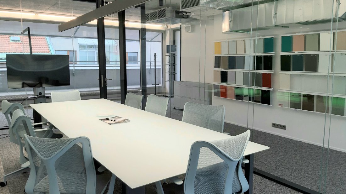 V atraktivním a designově čistém prostoru prezentujeme výrobky AGC včetně ukázky práce specializovaného instalačního týmu AGC a prémiovou prosklenou příčku značky Terso Visio.