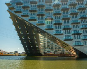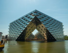 Sluishuis je ikonický rezidenční projekt navržený architektonickými kancelářemi Bjarke Ingels Group a Barcode Architects, který se nachází na ideálním místě, kde se setkává město, krajina a voda v amsterdamské čtvrti IJburg. Pro skleněné plochy bylo vybráno sklo Thermobel iplus s vysoce izolačním distančním rámečkem, a to jak ve verzi s dvojsklem, tak i trojsklem. Výrazná fasáda vypínající se nad vodní plochou je osazena protipožárním sklem Pyrobel EI 60, které je dostatečně pevné, aby se po něm dalo chodit.